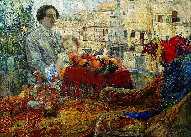 Isaak Brodsky - Self-portrait with Daughter 1911